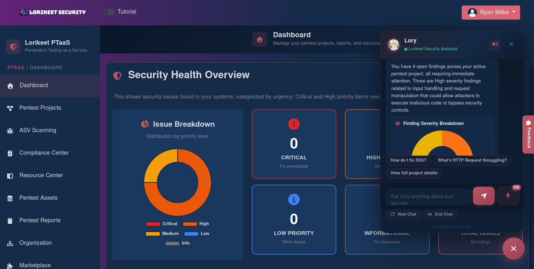 - Full-Stack, Manual Testing with Free Retesting. Competitors often rely on automated scanners or hand you a static PDF. Lorikeet’s 100% manual testing across web, APIs, mobile, cloud/K8s, AD, and even AI-agent security finds the real issues, then verifies every fix for free. For marketers, that translates to cleaner trust-center updates, fewer back-and-forths with security teams, and stronger case studies post-remediation.